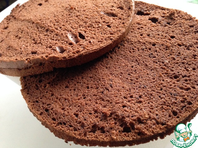 Готовый бисквит полностью остудить. И разрезать на две части!