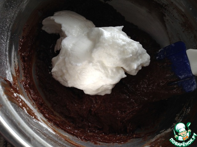 Просеять муку с крахмалом, разрыхлителем и солью. Постепенно добавить к шоколадно-желтковой массе, хорошо перемешать.