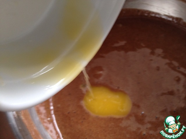Добавить какао во взбитые желтки и аккуратно перемешать.