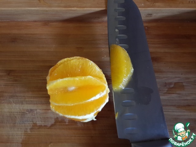 У апельсина срезать ножом кожуру и вырезать сегменты без перегородок.