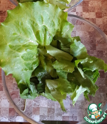 Начинаем собирать салат. Рвем салат руками, укладываем на дно креманки.