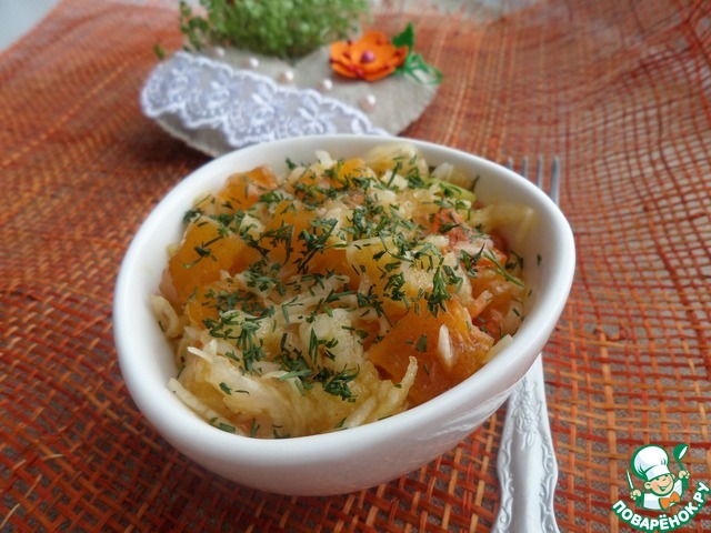 | Известный факт - практически ни один праздник не обходится без салатов с капустой. Любит русский народ сей овощ. Мой салат один из вариантов на капустную тему... Пробуйте!!! |