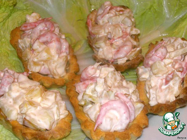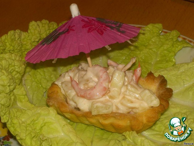 | "Кто на море не бывал, тот креветку не едал. Кто креветочку не кушал, тот на море бил баклуши". Такими шутками-прибаутками рекламировал на Азовском море свой товар продавец-разносчик. Теперь, когда в нашей семье готовят что-то с креветками, всегда вспоминают этого продавца. "На конкурс "Королева фуршета" |