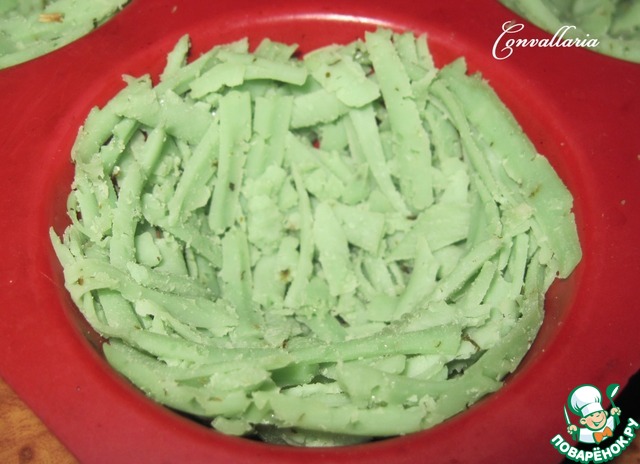 Формочку поставить в духовку, разогретую до 180 градусов примерно на 3-5 минут, чтобы растаял сыр.