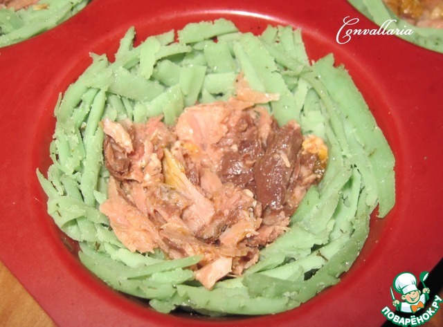 Затем убрать в холодильник до полного застывания сырных "корзинок" и только после этого закуску аккуратно вынуть.