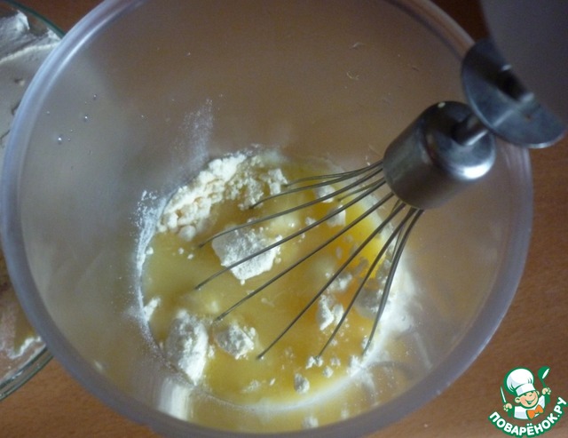 Добавить 1/3 сухого молока и взбивать смесь миксером, затем небольшими порциями вводить остальное молоко, продолжая взбивать миксером, чтобы не было комочков