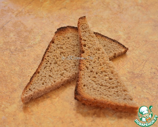 Тонкий ломтик хлеба, разрезанный на треугольники, поджарить в тостере.