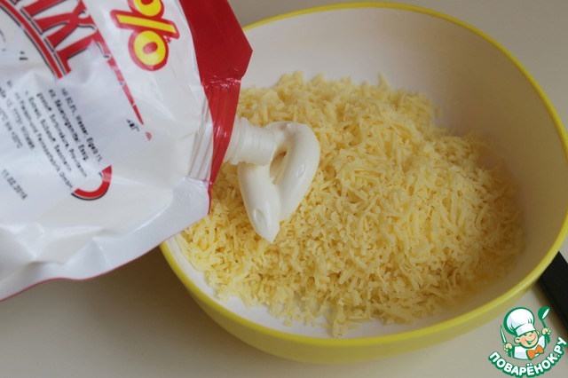 Добавляем к сыру майонез. И чеснок (по желанию).