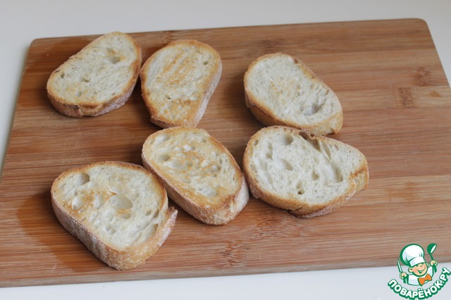 Багет нарежем на кусочки, примерно 1см толшиной.