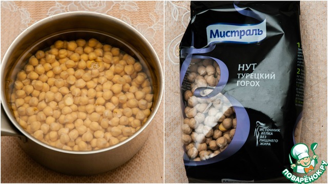 Для начала нужно приготовить нутовую муку. Я бы не советовала брать для этого рецепта готовую покупную муку, так как может присутствовать запах нута. Нут замачиваем в большом количестве воды и оставляем на 6-12 часов для набухания. После этого тщательно промываем, заливаем чистой водой и варим до готовности нута (я варила два часа).