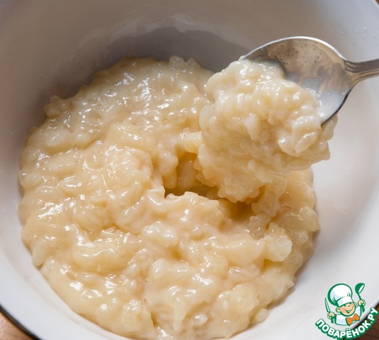 Пока макаронс подсыхают, можно заняться кремом. Рис придает крему очень интересную структуру, бархатистость, некую плотность но в то же время остается очень нежным. Рис хорошо промываем, кладем в кастрюлю, заливаем молоком, доводим до кипения и варим довольно густую рисовую кашу.