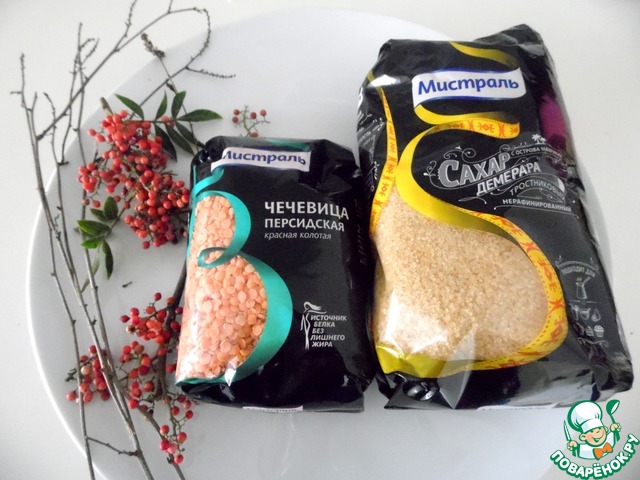 В этом рецепте я использовала, сахар и чечевицу Мистраль