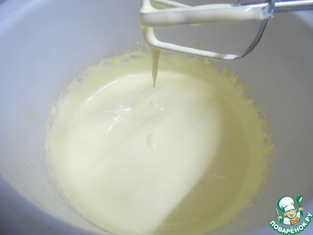 Желтки взбить с сахаром и добавить пол столовой ложки чечевичной муки, до увеличения массы.