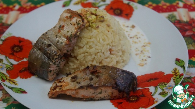 | Обычно курага и фисташки идут к курочке, а тут - рыбка. Неожиданно? Конечно. Но у этих ингредиентов есть два связующих звена: пряный рис и ароматный сливочный соус. И каждая их составляющая играет свою ноту, которые вместе сливаются в гармоничную и прекрасную мелодию. |