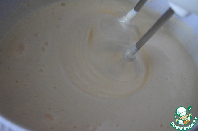 К взбитым яйцам добавляем растопленное масло, перемешать ( взбить ).
