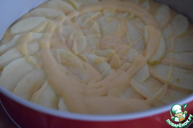 Можно яблоки перемешать сразу с тестом и распределить по форме.