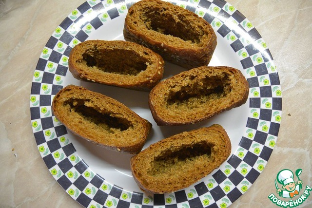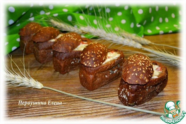 После выпечки прикрыть хлебчики срезанными шляпками. Вкусно, красиво и просто.