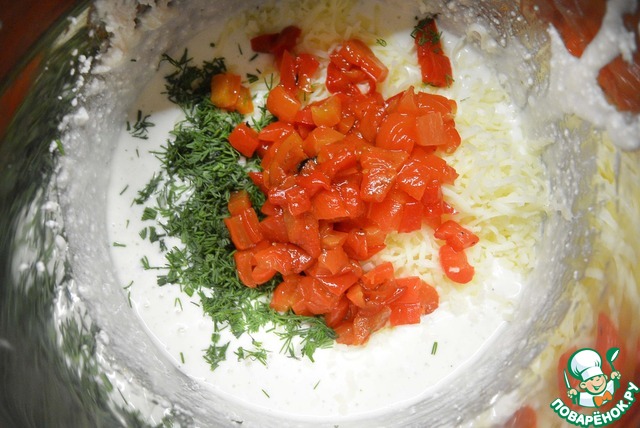 | Довольно быстрая и очень вкусная горячая закуска из творога, сыра и запеченного болгарского перца. А как она красиво и интересно смотрится на столе! |