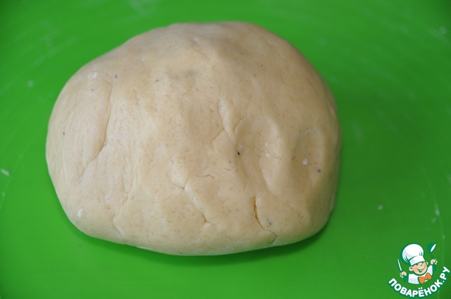 В итоге получаем плотное, но эластичное тесто, кладём его в холодильник на 30 минут.