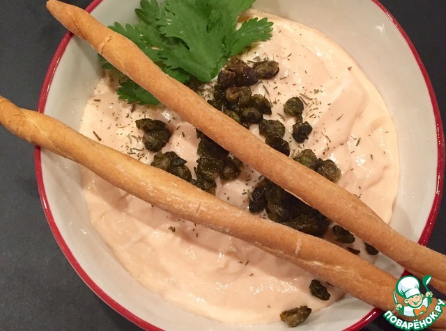 | Предлагаю вам "Дип"... Можно сказать, что это закуска. Некий соус, если так можно выразиться, в который можно макать чипсы, сухарики, палочки хлеб и тд и запивать бокалом вина или пива ( или что там вам сейчас пришло в голову...). Это невероятно нежная закуска перед обедом или ужином. Пока горячее готовится эта закуска улетит моментально. Да, рецепт подглядела у подруги повара из Англии. Пробуйте. Приятного аппетита! |