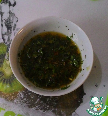Для заправки смешать ароматное растительное масло, соевый соус, мелко нарезанную зелень и чеснок, пропущенный через пресс. Добавить сушеный (можно свежий) базилик, смесь перцев.