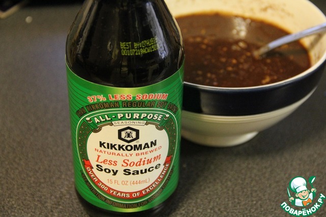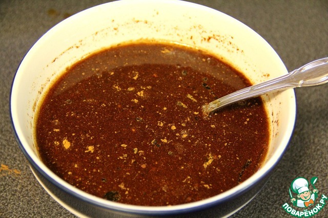 Делаем маринад. Для этого смешиваем мед, оливковое масло, соевый соус, белое вино, перец, лимонный сок и корицу.