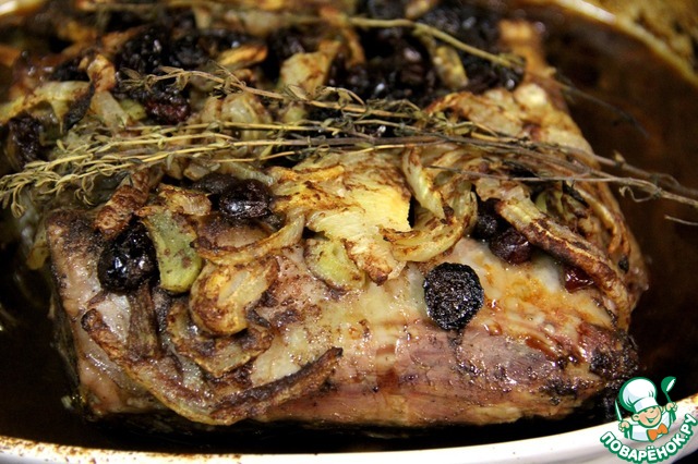 Затем нагреваем духовку до 200С (400F), ставим замаринованную баранину и готовим 60 минут.