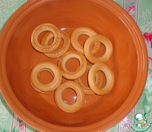 Понадобятся маленькие сушки, которые также высыпаем в глубокую тарелку.