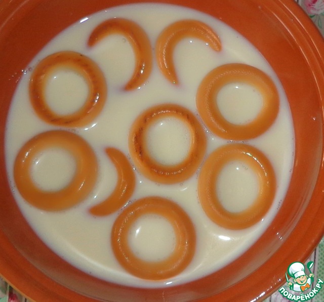 Сушки залить теплым молоком и оставить на 15 минут, чтобы они стали мягкими.