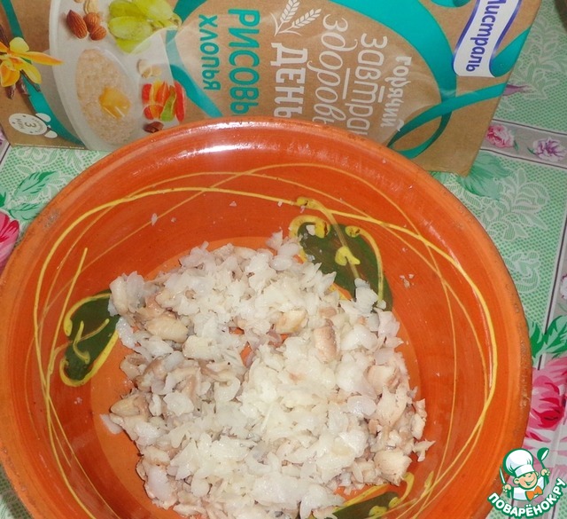 А мы займемся приготовлением начинки. Итак, рыбное филе измельчить.