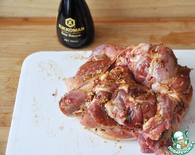 Для удобства рульку выворачиваем и натираем маринадом.