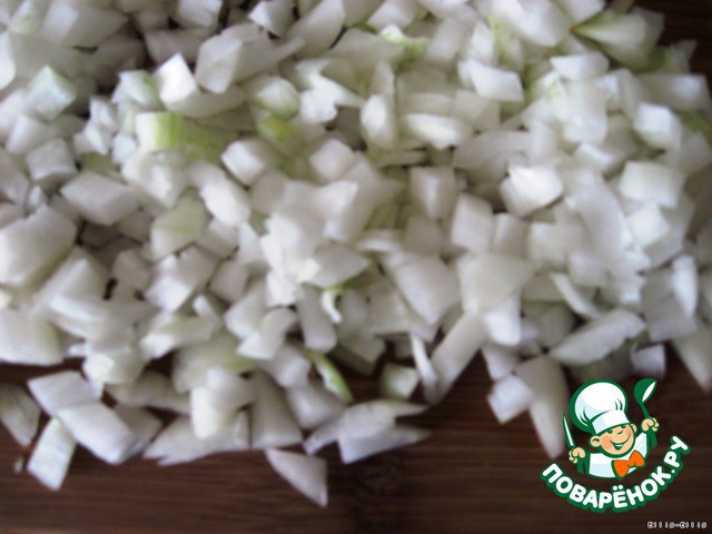 Лук мелко порежем. Если вы не любите лук, то просто пропускаете этот шаг.