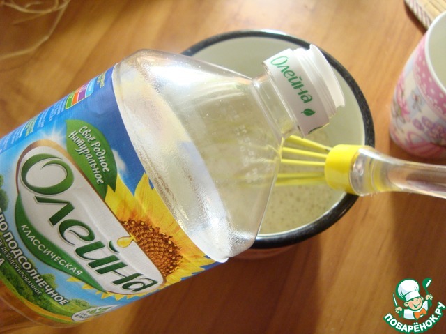 Делаем тесто для блинов. Соединяем все ингредиенты, добавляем масло подсолнечное и постоянно помешивая венчиком, наливаем в тесто кипяток. Тесто жидкое для тонких блинов.
