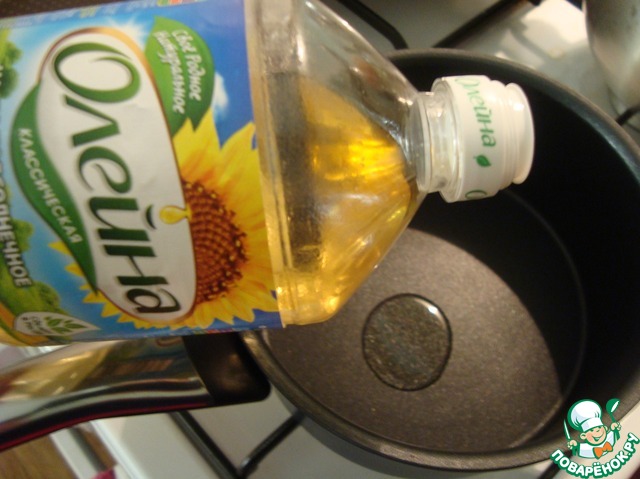Делаем начинку. В сотейник наливаем подсолнечное масло и разогреваем его.