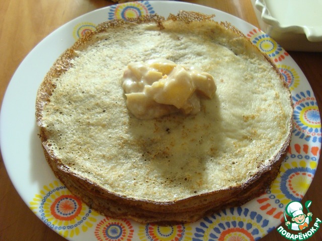 | Фрукты с корицей и творогом-необыкновенно вкусное лакомство, завёрнутое в тонкие блинчики. |