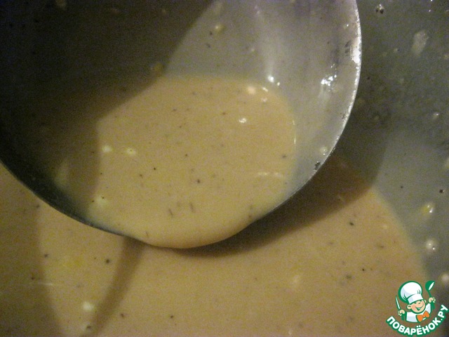 2 ст. л. муки заливаем теплым молоком, хорошенько перемешиваем, чтобы не было комочков