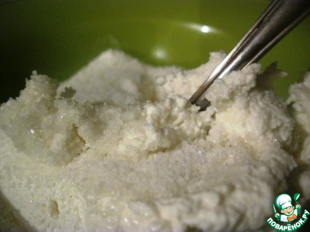 Смешаем маскарпоне с сахаром, хорошенько разотрем в однородную массу.