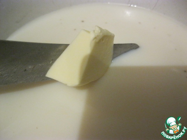 Теперь варим заварной крем. Нагреваем молоко, растворяем в нем сливочное масло, сахар, ванилин