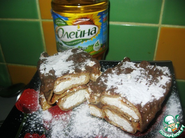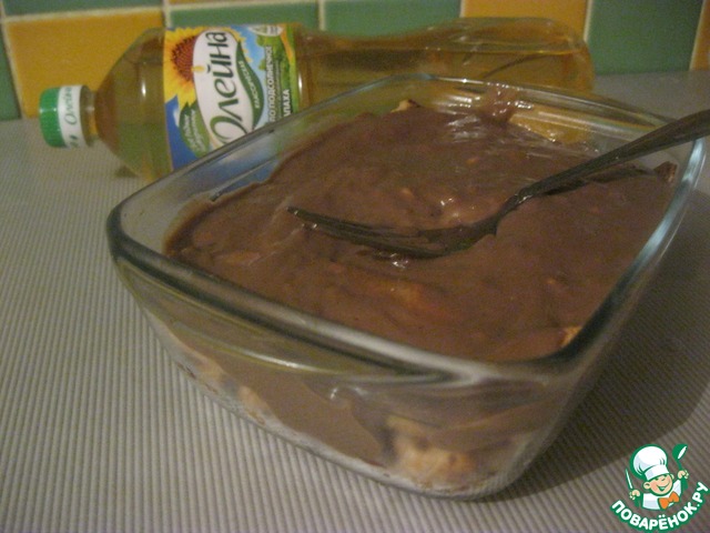 Заливаем кремом блинные "савоярди" и убираем в холодильник на 6-8 часов.