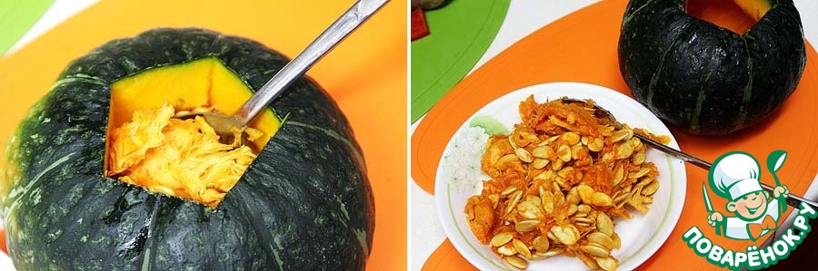 Если верхушку проблематично срезать, то отправьте тыкву в духовку на пару минут, чтобы придать ей мягкости.
