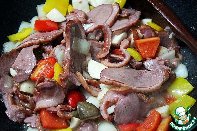 Добавьте остальную начинку и обжарьте, пока не подрумянится грудинка.