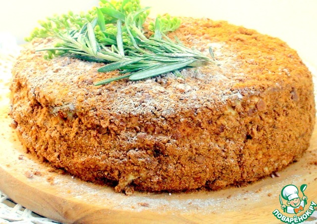 Осталось совсем немного собрать торт, промазав каждый слой кремом и обсыпав его крошкой из одного коржа, или из обрезков теста.