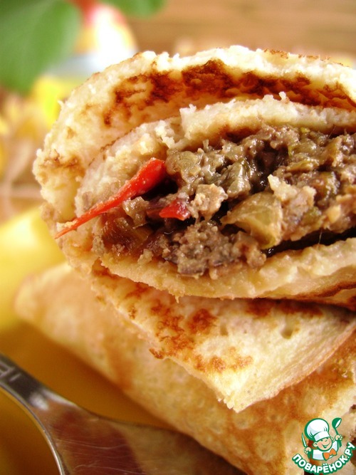 | В принципе, блинчики можно начинять чем угодно, чего душа просит в данный отрезок времени. А сегодня душа просит острого и горячего. И чтоб быстро. Когда блинчики уже готовы, начинку сделать можно за считанные минуты. |