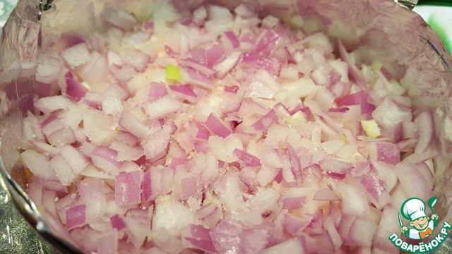 Второй слой лук. Я совсем немного присыпала лук солью.