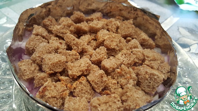 Третий слой гренки. можно взять любые, но не слишком жесткие.