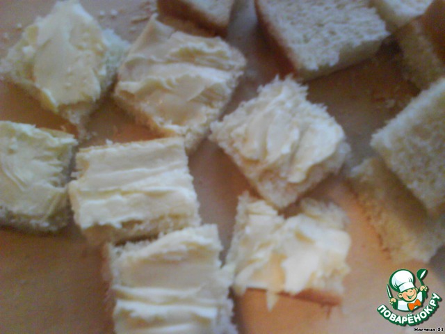 Хлеб "Пикник" или батон нарезаем квадратиками и каждый кусочек смазываем тонким слоем сливочного масла. Для пикантности можно заменить масло плавленным сыром типа "Almette"