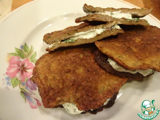 И последний шаг. Готовым оладьям даём остыть и соединяем попарно, смазывая между ними нашим соусом.