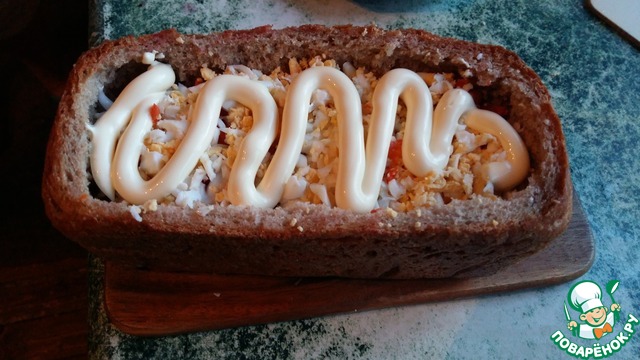 Готовую закуску необходимо выдержать в холодильнике несколько часов, можно смело оставить и до следующего дня, тогда начинка не разваливается, а хлеб при этом не промокает. Слои приминать не надо.