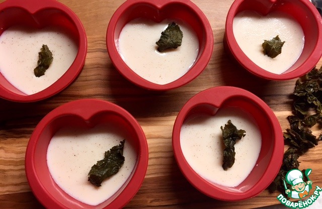 Чай молочный улан имеет нежный и очень деликатный сливочно-молочный вкус. Достаньте формы из холодильника. Я взяла листья луна и воткнула в молочное желе.