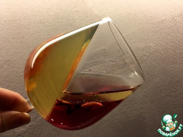 Замочите еще 4 листика желатина до набухания. Растворите в чае. Не добавляйте сахар. Чай сам по себе потрясающе изысканный. Слегка остудите и налейте в формы.